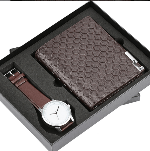 Men’s Gift Set Exquisite Packaging Watch And Wallet Set. Foreign Trade And Hot Creative Combination Set (Black&Brown)